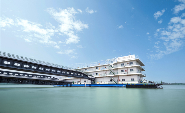 該工程于2020年完工,橫跨湖南省岳陽市君山區(qū),總投資3 54億元,建設(shè)內(nèi)容主要為泵船取水、水系連通、華洪運(yùn)河整治三項(xiàng)工程。創(chuàng)造了取水泵船船體尺寸及噸...